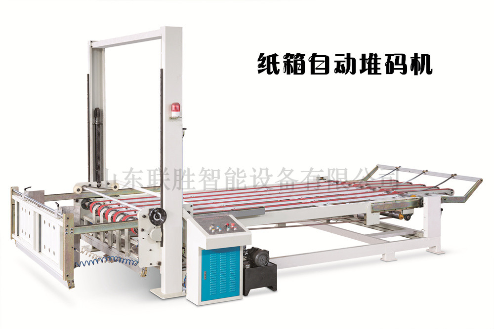 紙板堆積全過程,均由控制系統自動完成;紙板輸送速度,可視生產需要任意調整;該部工作時,設有可靠的安全自動保護裝置;前段為氣壓式升降控制接紙臂,后段為液壓式升降臺,確保生產安全;采用皺紋皮輸送帶,保證平穩送紙;變頻調整,堆積動作采用臺灣永宏PLC控制,性能穩定。 | The whole process is completed automatical controlled by the control system; speed is adjustable according to production needs; when working, a reliable safety device is provided; the front section is a pneumatic controlled receiving arm; the rear hoisting platform is driven by hydraulic, which ensures the safety of operators; the wrinkled surface conveyer makes the delivery stable and steady; frequency conversion adjustment and stacking adopts Taiwan Yonghong PLC control, the performance is stable. | |||