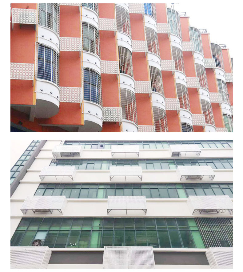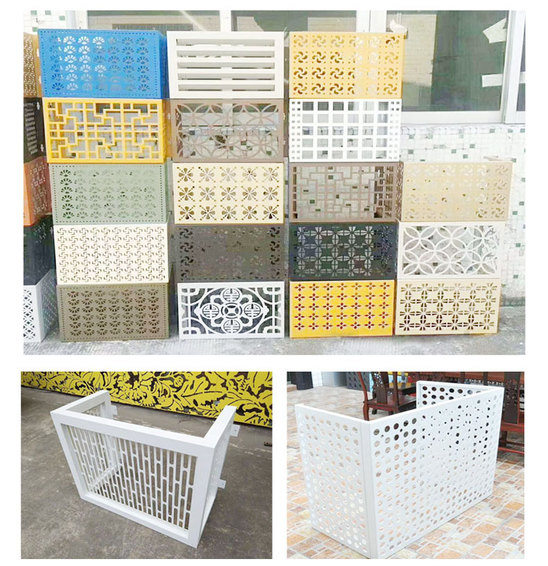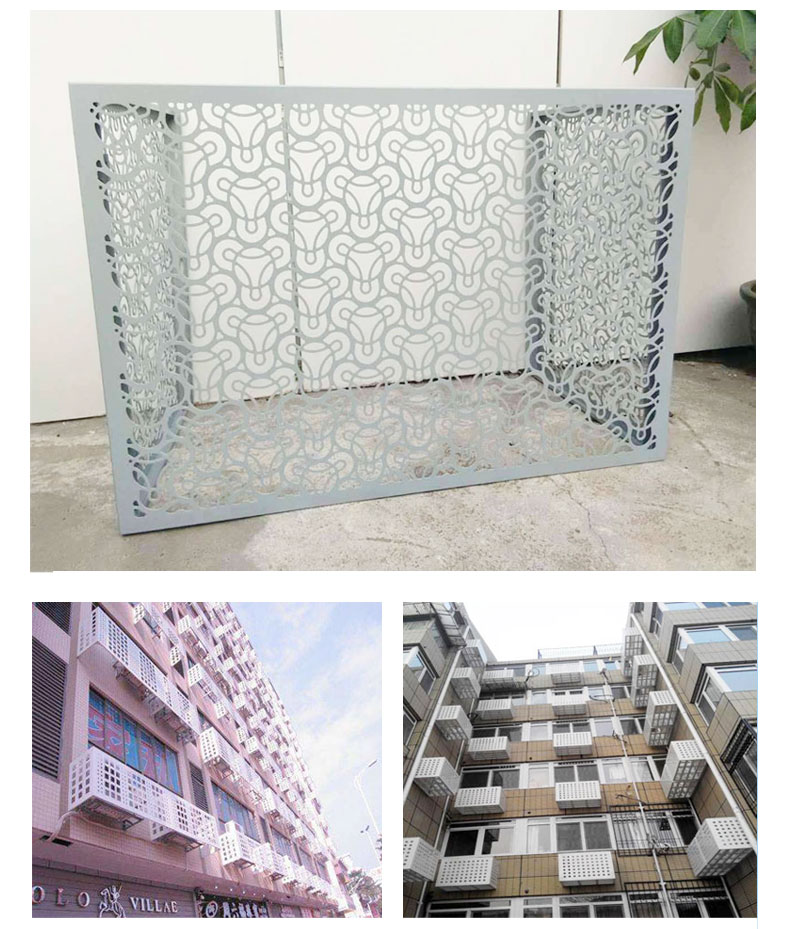 鋁單板空調罩的質地十分輕,不只具有強度高、易裝置、外形漂亮等特色。空調罩廠家現推出新產品,在現有面積巨細不變的情況下,規劃上更為杰出新穎。在兩個旁邊面別離加入了三個不銹鋼合頁,采用了折疊式的形式,收放自如,可選擇性地將空調罩兩邊的“門”關起來。提高了空調罩的固定性,因為采用了折疊式和拆裝式結構,大大減小了體積,運送成本大大下降,拆裝也十分簡單,具有結構合理、出產便利、簡單包裝運送等長處。
